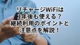 リチャージWiFiの端末がどのくらいの期間使えるかについては、「物理的な寿命」と「サービスとしての利用継続性」の2つの側面から考えられます。まず、ルーターという電子機器としての物理的な寿命は、一般的に2〜3年程度が目安とされています。特に寿命を左右するのが内蔵バッテリーで、充放電を繰り返すうちに徐々に劣化し、バッテリーの持ちが悪くなっていきます。家で使う場合は常に充電ケーブルを挿したまま使うこともできますが、過充電はバッテリーの消耗を早めたり、膨張のリスクを高めたりする可能性もあるため注意が必要です。一方、サービスが継続している限り、端末自体が故障しなければデータをチャージして使い続けることは可能です。では、更新のタイミングはいつが良いのでしょうか。明確な基準はありませんが、「バッテリーが1日持たなくなったり、以前より通信が切れやすくなったりしたら」買い替えを検討するサインです。また、より高速な通信規格に対応した新しいモデルが登場した際に、快適性を求めて買い替えるというのも良いタイミングと言えるでしょう。